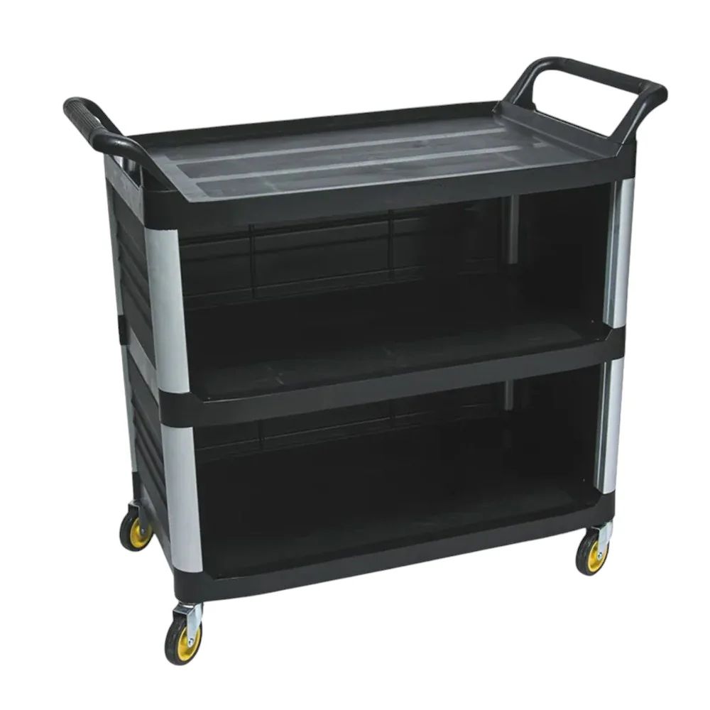 Ruedas con banda de goma. Estante con relieve que permite que sea antideslizante para mayor seguiridad al transportar.